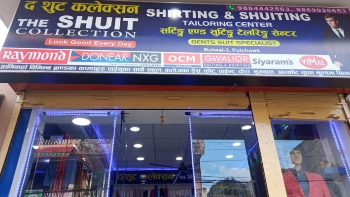 द शुट कलेक्सन ( THE SUIT COLLECTION ) हामीकहाँ विभिन्न ब्राण्डका कपडाहरु पाईनुका साथै स्कुल ,कलेजका ड्रेस ,काेट पाईन्ट, दाैरा सुरुवाल आस्काेट सुपथ मुल्यमा सिलाईन्छ ।