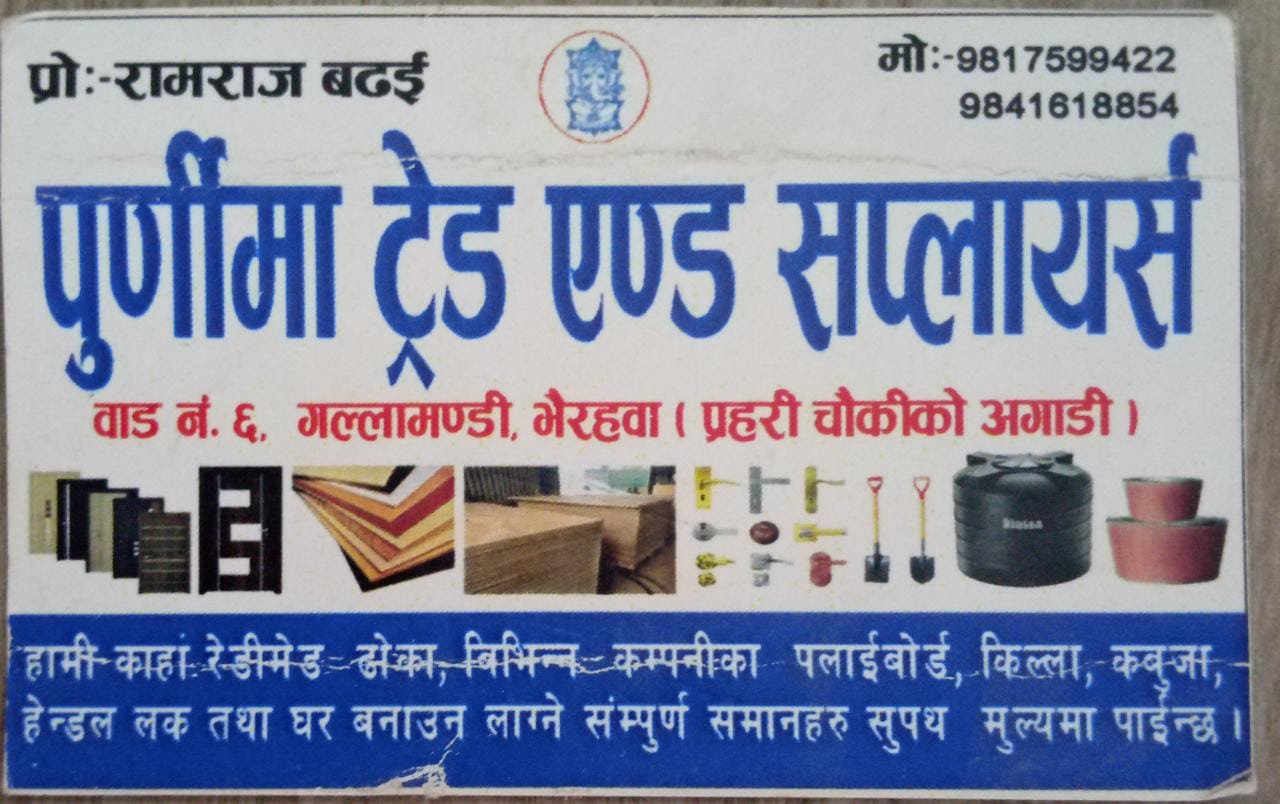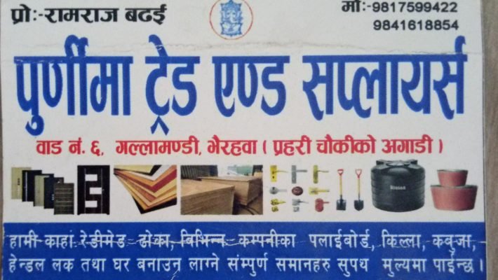 हामीकहाँ रेडिमेट ढाेका, बिभिन्न कम्पनिका पलाईबाेर्ड,किल्ला कब्जा,हेन्डल लक तथा घर बनाउन लाग्ने सम्पूर्ण सामानहरु सुपथ मुल्यमा बिक्रि बितरण गरिन्छ ।
