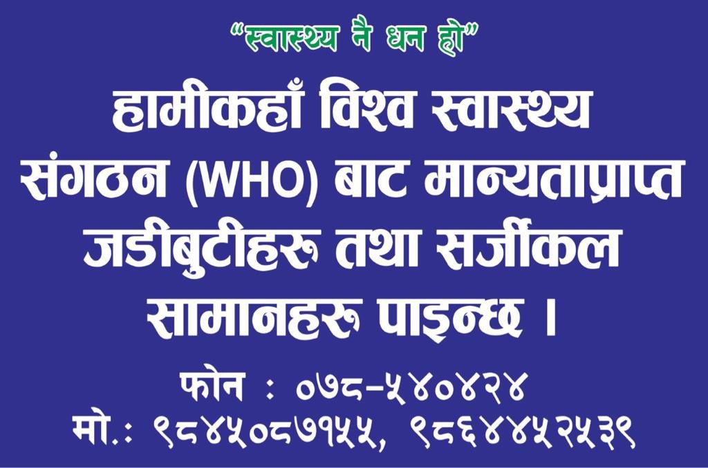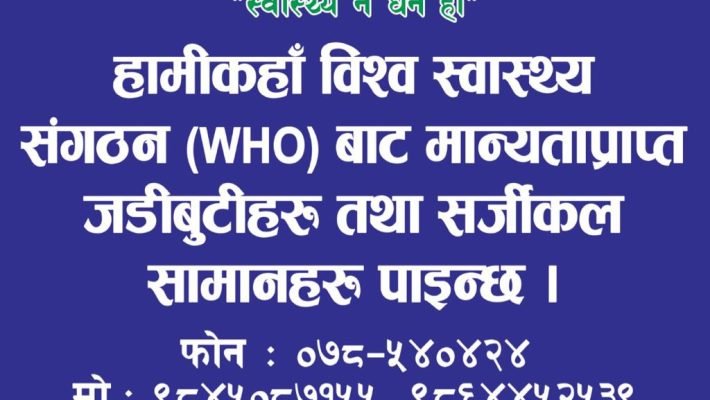 Maula kalika Traders माैलाकालीका ट्रेडर्स 9845087455 Kawaswoti 8 Save Submit Review Share Share This Post: facebook twitter linkedin google pinterest Description हामीकहाँ फुड सप्लिमेन्ट तथा सर्जिकल सामानका साथै बिश्व स्वास्थ्य संगठन Who बाट मान्यता प्राप्त जडिबुटीहरु पनी पाईन्छ । Maps Map Street View Get Directions Photos Today Open SundayOpen All DayMondayOpen All DayTuesdayOpen All DayWednesdayOpen All DayThursdayOpen All DayFridayOpen All DaySaturdayOpen All Day Close Statistic 167 Views December 30, 2024