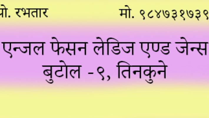हामीकहाँ हरेक किसीमका कपडा तथा बच्चाकाे कपडाहरु उपलब्ध हुनुका साथै नयाँ नयाँ आईटमहरु जस्मा लेडिज, व्याग, पर्स, सट पाईन्ट, टिसटहरु उपलब्ध गराईन्छ।