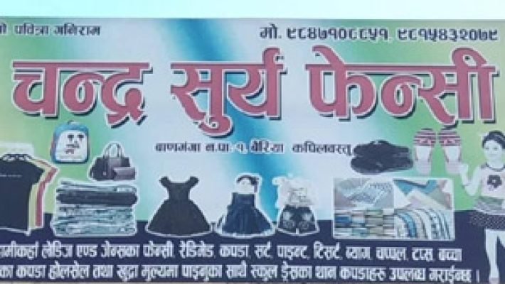 हामीकहाँ विभिन्न प्रकारका लेडिज एण्ड जेन्सका, फेन्सी, रेडिमेट कपडा, सर्ट, पाइन्ट, टिसर्ट, व्याग, चप्पल, टप्स, बच्चा बच्चीका कपडा हाेलसेल साथै स्कुल ड्रेसका पनि कपडाहरु पाईन्छ।
