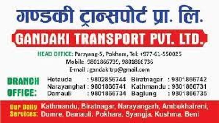 Gandaki Transport Pvt.Ltd Gandaki Transport Pvt.Ltd Damauli Transportation 984-6113943 Byas Save Submit Review Share Share This Post: facebook twitter linkedin google pinterest Description Gandaki Transport Pvt Ltd location at Tanahun, Gandaki Pradesh, Nepal Maps Map Street View Get Directions Listing Amenities Alarm System Bike Parking Outdoor Seating Parking Street Security Cameras Wheelchair Accesible Wireless Internet Photos Today Open SundayOpen All DayMondayOpen All DayTuesdayOpen All DayWednesdayOpen All DayThursdayOpen All DayFridayOpen All DaySaturdayOpen All Day Close Statistic 426 Views February 25, 2024