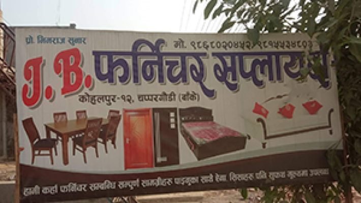 J.B Furniture Suppliers जे.बी फर्निचर सप्लायर्स Furniture & Decoration 9868020452 kohalpur 12 Save Submit Review Share Share This Post: facebook twitter linkedin google pinterest Description हामीकहाँ फर्निचर सम्बन्धि सम्पुर्ण सामाग्रीहरु पाईनुका साथै सिसाहरु पनि सुपथ मुल्यमा उपलब्ध गराईन्छ । Maps Map Street View Get Directions Listing Amenities Alarm System Bike Parking Outdoor Seating Parking Street Smoking Allowed Wireless Internet Photos Today Open SundayOpen All DayMondayOpen All DayTuesdayOpen All DayWednesdayOpen All DayThursdayOpen All DayFridayOpen All DaySaturdayOpen All Day Close Statistic 184 Views January 10, 2025