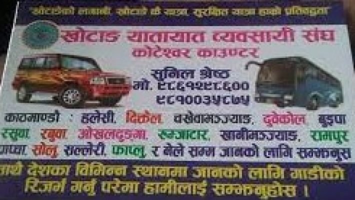 Khotang Yatayat Office Khotang Yatayat Office Transportation 036-420680 Diktel Save Submit Review Share Share This Post: facebook twitter linkedin google pinterest Description Khotang Yatayat Office location at Diktel, Rupakot Majhuwagadhi, Khotang Maps Map Street View Get Directions Listing Amenities Alarm System Bike Parking Outdoor Seating Parking Street Security Cameras Wheelchair Accesible Wireless Internet Photos Today Open SundayOpen All DayMondayOpen All DayTuesdayOpen All DayWednesdayOpen All DayThursdayOpen All DayFridayOpen All DaySaturdayOpen All Day Close Statistic 428 Views February 25, 2024