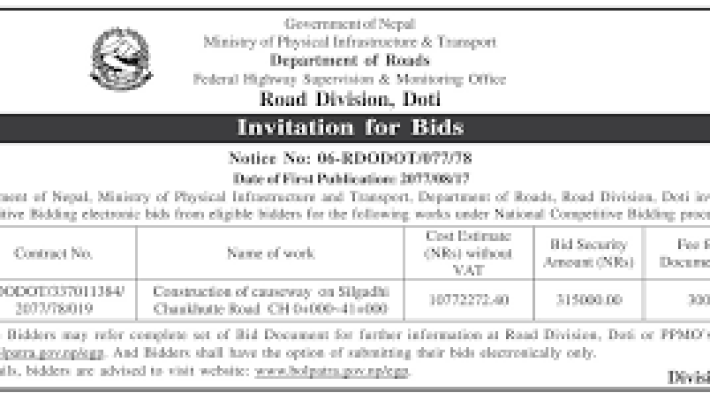 Department of Roads (DoR) had been established along with Department of Building after splitting from Public Works Department (PWD) in 2027 B.S. Mr. Dipti Jung Thapa became the chief Engineer of DoR and served as such from 2027 till 2032 BS.