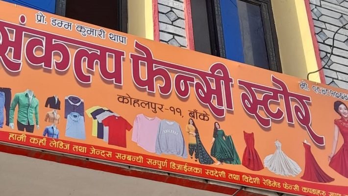 संकल्प फेन्सी स्टाेर हामीकहाँ लेडिज एण्ड जेन्स सम्पुर्ण सामानहरु पाउनका साथै धाेती सुटहरु पाइन्छ र ५ वर्ष भन्दा माथिका बच्चाकाे लुगा , जाडाे गर्मी महिनाकाे थरी थरीका लुगाहरु पाइन्छ ।