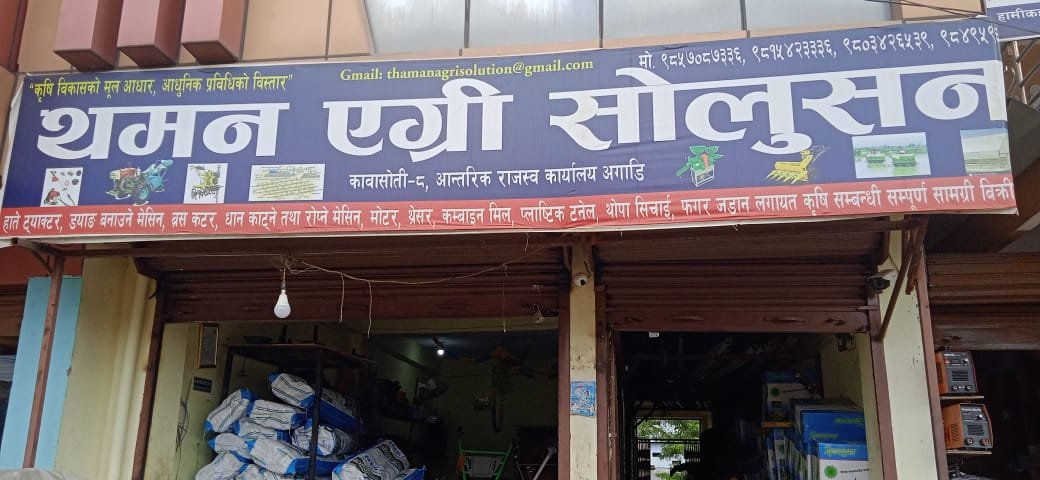हामीकहाँ हाते ट्याक्टर, डयाङ्ग बनाउने मेसिन, ब्रस कटर , धान काटने तथा राेपने मेसिन , माेटर , थ्रेसर ,कम्बाइन मिल ,प्लाष्टिक टनेल, थाेपा सिचाई, फगर जडान लगायत कृषि सम्बन्धी सम्पुर्ण सामाग्री बिक्री गरिन्छ ।